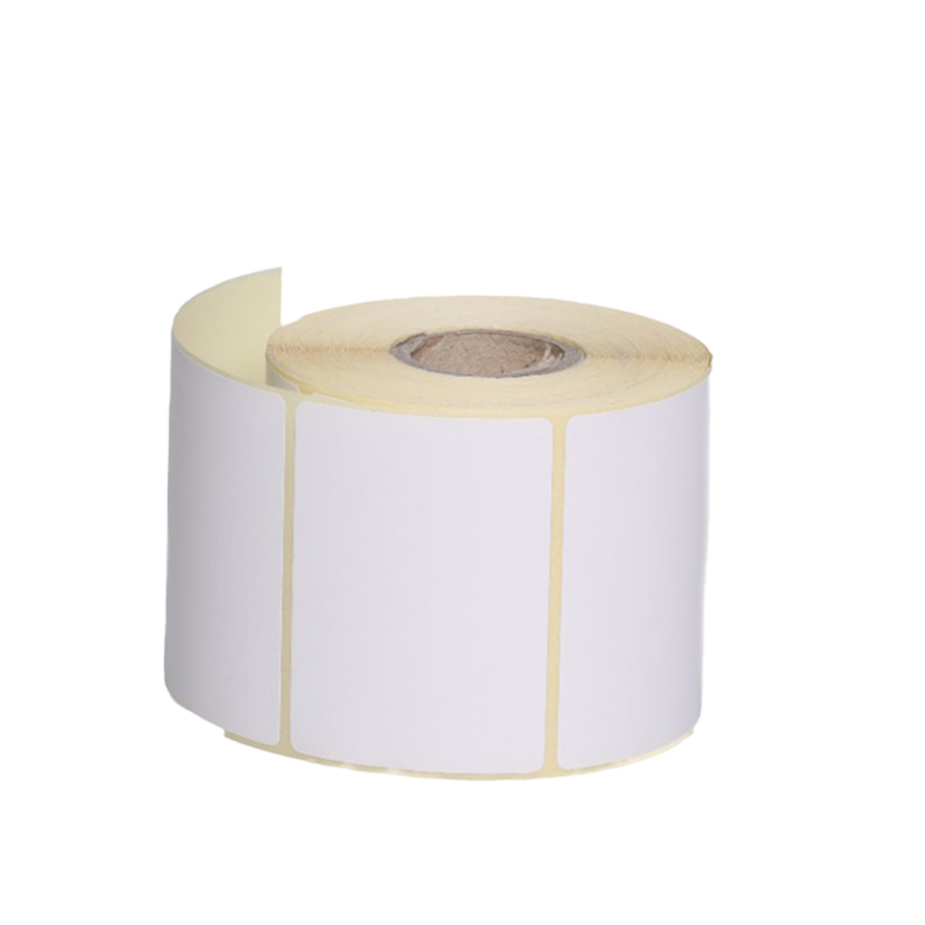 Étiquette vierge 100×150 mm, papier blanc mat de mandrin 76mm. 1000 étiquettes par rouleau, compatibles avec les imprimantes thermiques.
